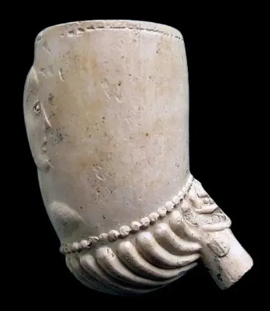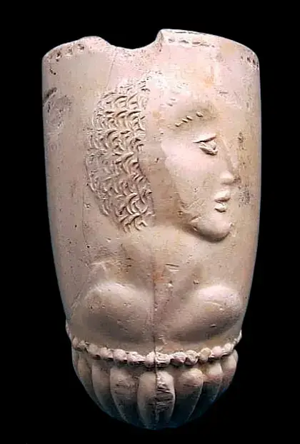 2b. Aan de voorzijde van de ketel een profielportret van een vrouw. Onderzijde lobben met parelrand