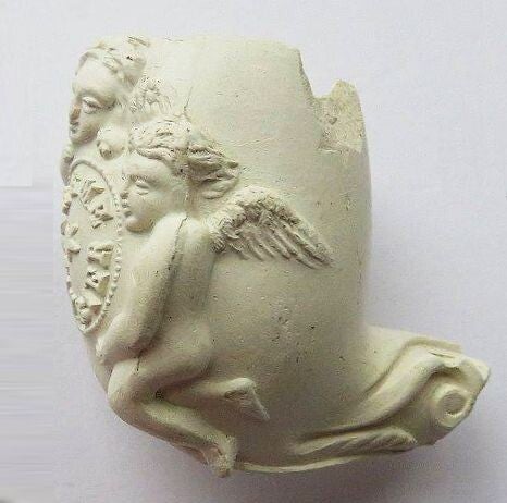 2b. Twee Engeltjes, Parelrand medaillon met centraal een ster en rondom de tekst CREME GAMBIER
