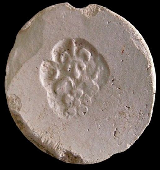 2d. Lelie en Vijfbladige Roos met de initialen DA (Initialen moeilijk leesbaar)