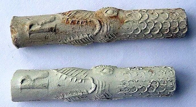3a. Walvisbek schubben en de initialen RB