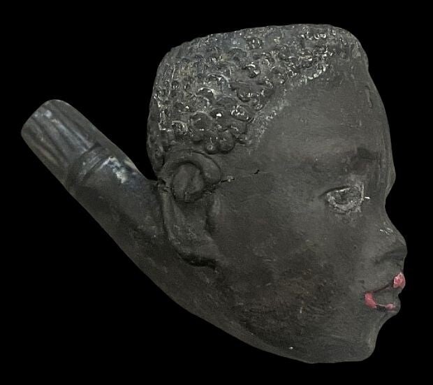2h. Zwart gebakken, lippen rood en ogen wit gelakt