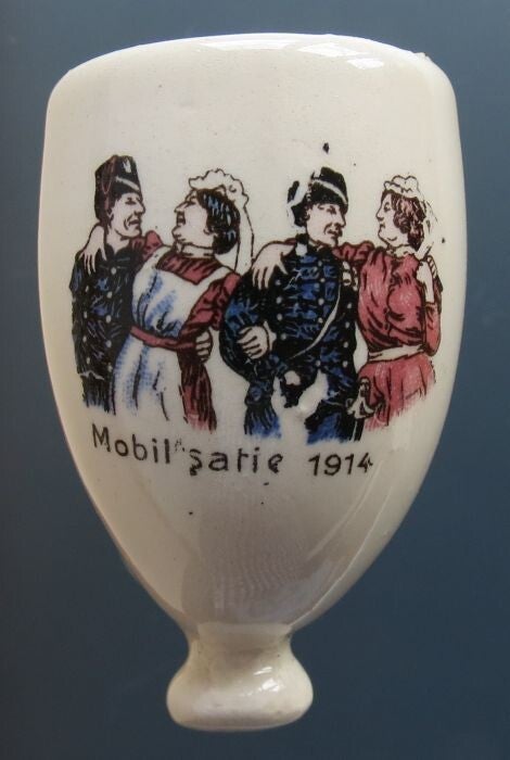 2b. Transfer plaatje. Twee huzaren in gezelschap van twee dames MOBILISATIE 1914
