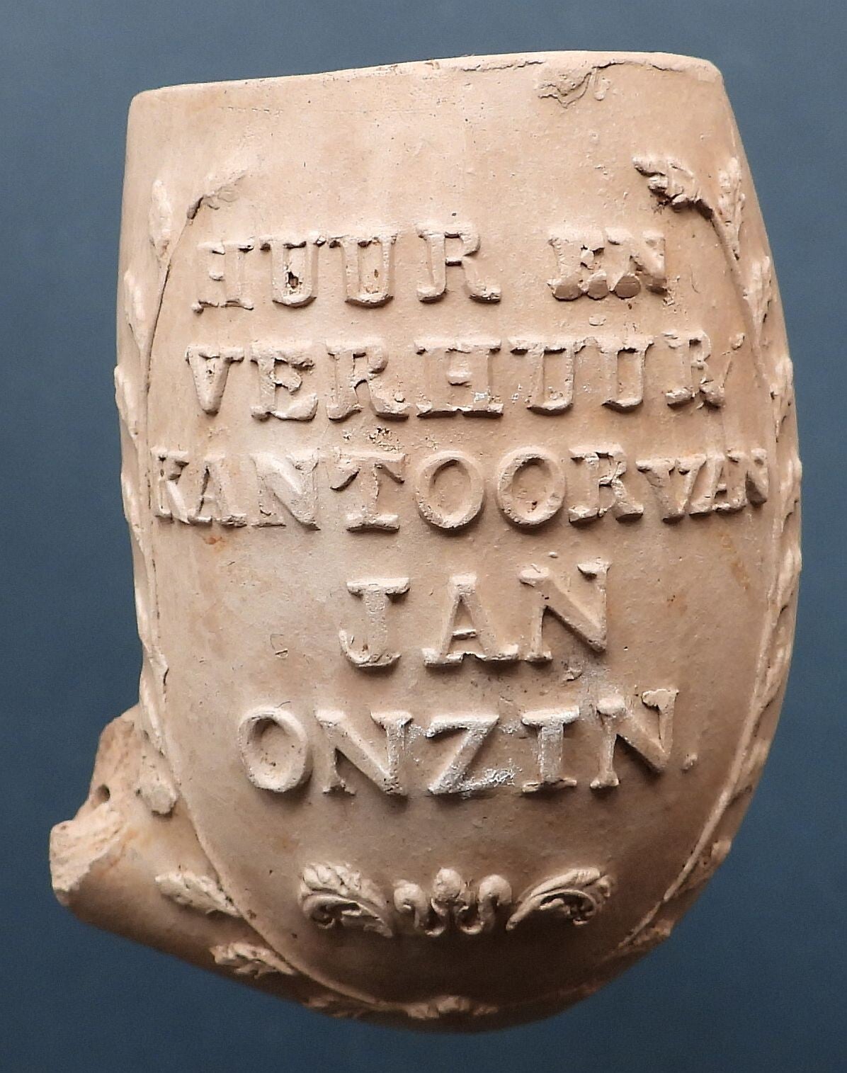 Opmerking: Pijp verwijst naar de spraakmakende Amsterdamse oplichter A.J. Onstee. Voor een complete uitleg verwijs ik naar het artikel van Bert van der Lingen in PKN Nr. 129 Jaargang 33 met de titel "Van fraudeur tot acteur, van Onstee tot Onzin. Kleipijpen met huur- en verhuurkantoor van Jan Onzin
