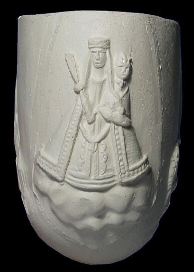 2b. Maria van Kevelaar met Cristuskind op de arm en aan beidde zijden de Basiliek van Kevelaer