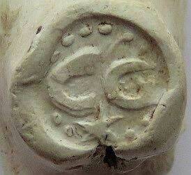 In Utrecht and its surrounding area, a striking number of pipes have been found with the heel mark CC, CG, or GG, with a star within a pearl circle underneath. These are beautifully finished pipes of excellent quality. The bowl and the stem have been burnished, and a complete specimen is 36 cm long. These marks are attributed to an as yet unknown pipe maker from Utrecht.