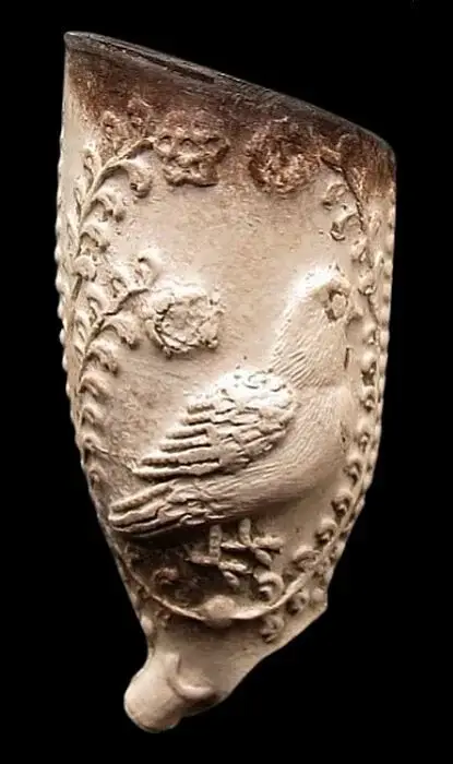 This decoration featuring a drake and a duck, or a duck and a drake, was so popular during that period that many pipes were also produced without initials, making it impossible to identify the makers. These pipes can be dated to the period 1700–1730.