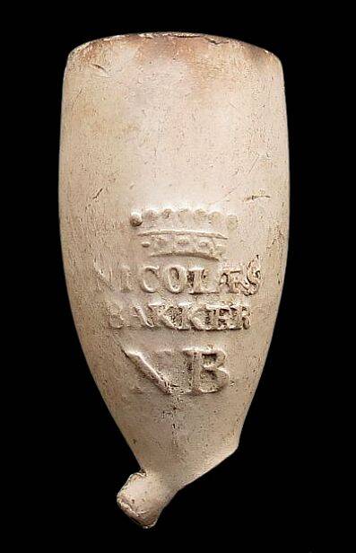 Nikolaes Bakker was a pipe maker in Schoonhoven. He was active approximately from 1745 until 1779, the year of his death. He used the well-known Schoonhoven marks, bearing his initials NB. There are also several pipes known on which his full name is depicted. In addition, pipes have been found with the initials NNB, which may have been made by Nicolaas Nijsz Bakker.