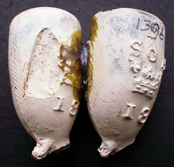 Sijmen Groenhouwer was a pipe maker in Gorinchem and was active from 1784 to 1820. The marks he used were Wapen van Arkel (Coat of Arms of Arkel), 18 crowned, and Fish crowned, with the addition of the initials SGH. He also used SGH as a heel mark.