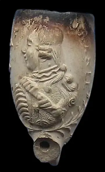Andries Kulink was a pipe maker in Schoonhoven and was probably active from about 1783 to 1796. The decorative motifs he used were a crowned N, a crowned fish, an egg basket, and a portrait of Stadtholder William V, with the addition of his initials AK or AKL.