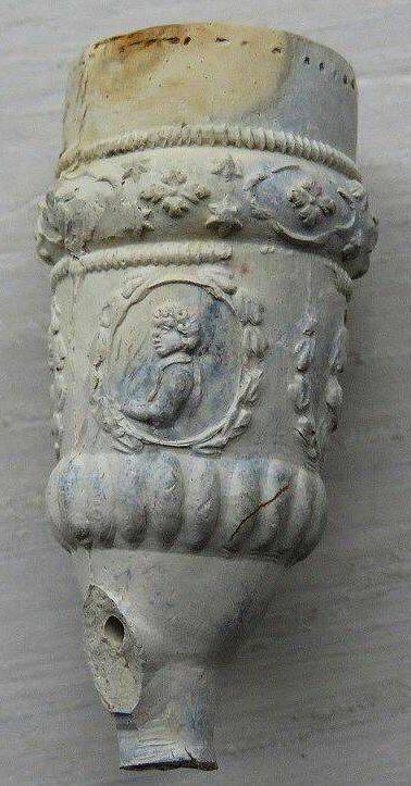 Onderstaande vondsten komen van Gouda locatie Kattensingel Wasserij De drie notenboomen uit een pijpenstort van Sparnaaij gevonden in 2003.