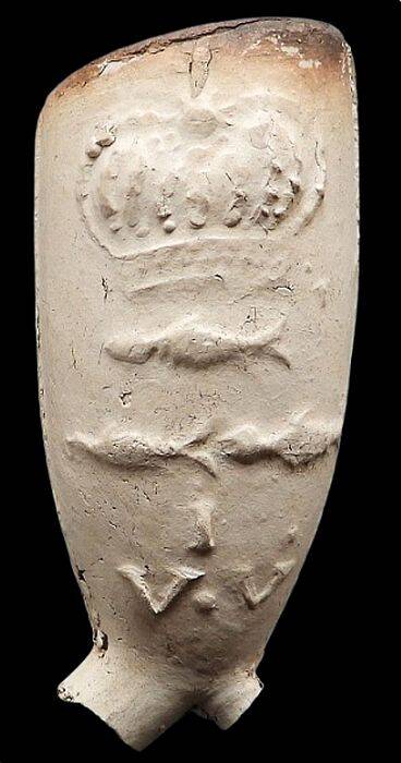 Jacobus van der Veen was a pipe maker active in Zwolle from 1738 to 1787. His pipes were distinctively decorated with an image of a sitting fisherman. On the reverse side, three crowned fish were depicted, along with the initials V.I.V. and I.V.V.