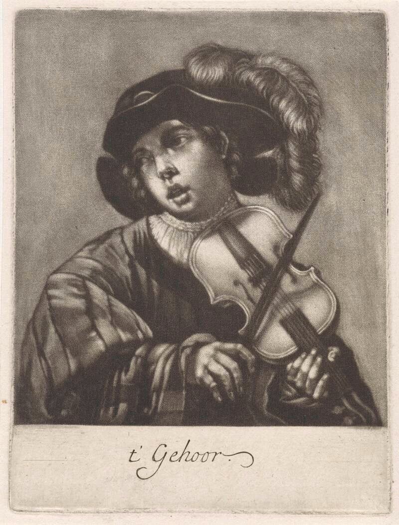 Afbeelding 10. Prent anoniem naar Jan Verkolje Vioolspeler t, Gehoor Rijksmuseum