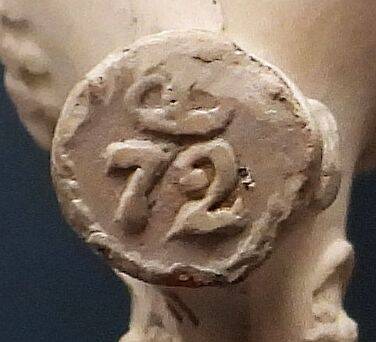 Mercurius - Neptunus pijp. Daar zijn er door verschillende pijpenmakers velen van gemaakt. Toch wijkt deze qua decoratie af bij de andere zodat ik hem graag onder de aandacht wil brengen. Bij de meeste andere pijpen zijn deze goden zittend afgebeeld en zien we aan de voorzijde een zee met schepen erop. Bij dit exemplaar zijn de goden staand afgebeeld en zien we op de voorzijde van de ketel het wapen van Gouda. Grappig detail is dat we naast Mercurius een haan zien staan. Mercurius is de god van de handel. Als je handel drijft moet je dag en nacht oplettend en waakzaam zijn, vandaar dat naast Mercurius een haan is geplaatst, het symbool voor oplettendheid en waakzaamheid. Dit exemplaar draagt het hielmerk 72 gekroond. Er zijn ook exemplaren met deze decoratie met het hielmerk IHP bekend.